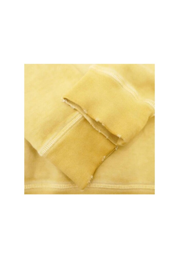 Giallo mostarda, cotone, cappuccio con coulisse, stampa con logo sul davanti, maniche lunghe e effetto vissuto.