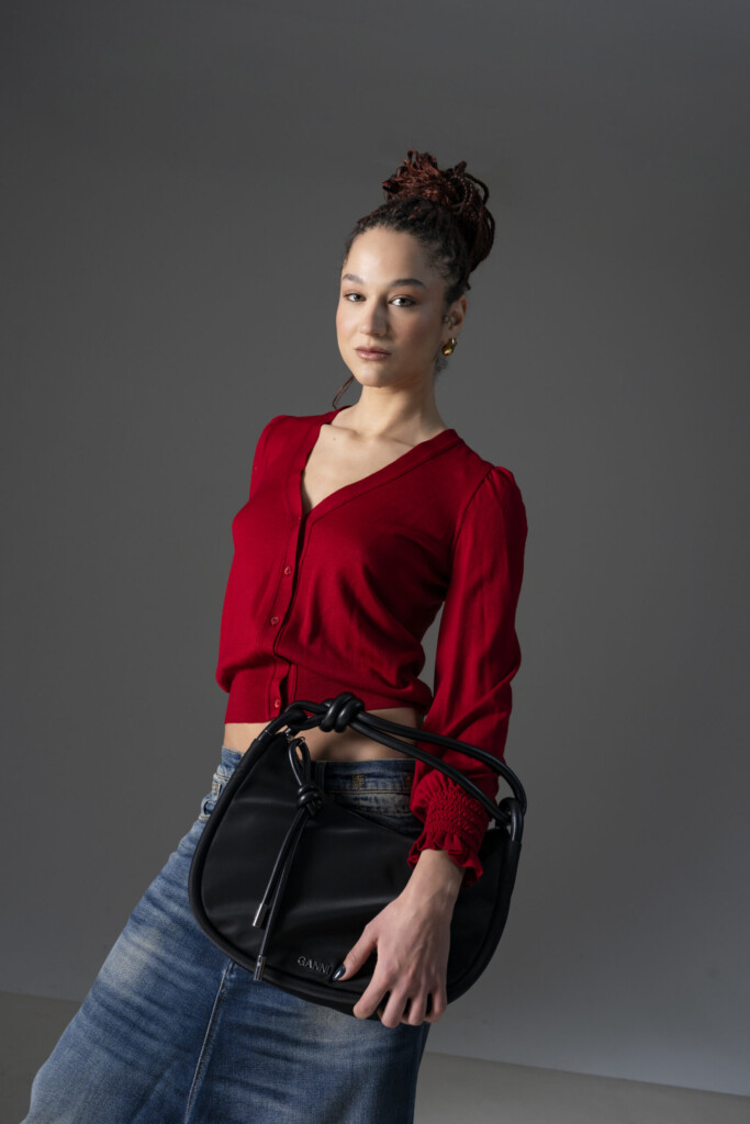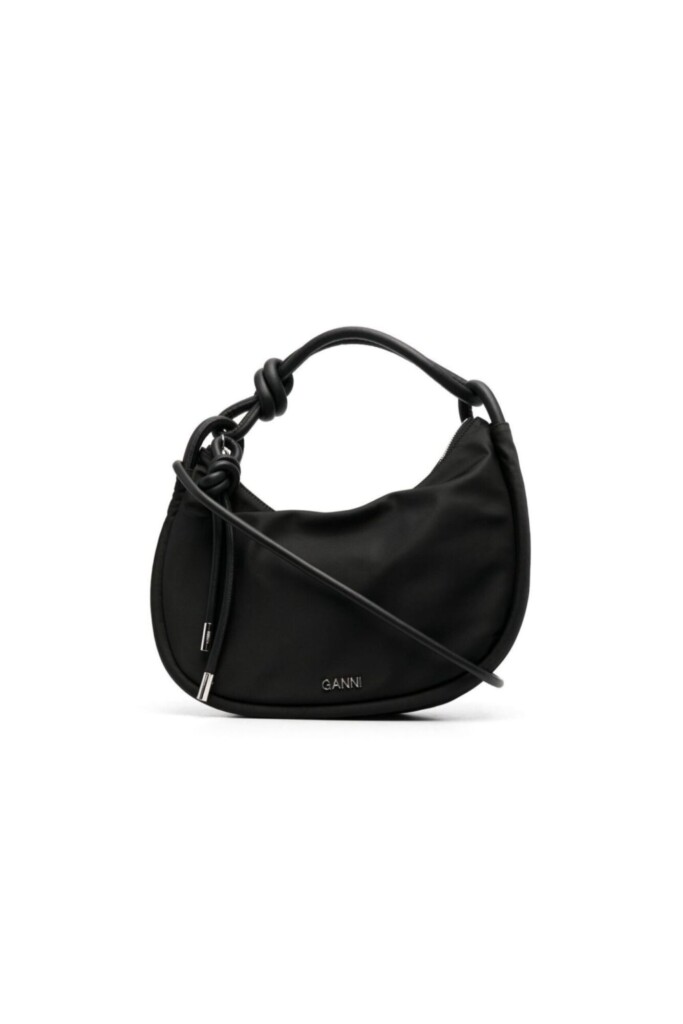 Nero, logo in lettere color argento, chiusura superiore con zip, dettaglio con nodo, manico singolo, tasca interna con zip e tracolla rimovibile. POSITIVELY CONSCIOUS: questo brand misura l’impatto di ogni articolo prodotto e fornisce una certificazione per ogni acquisto, la quale misura l’impatto ambientale di produzione e dichiara di aver coperto il costo per la compensazione delle emissioni di carbonio.