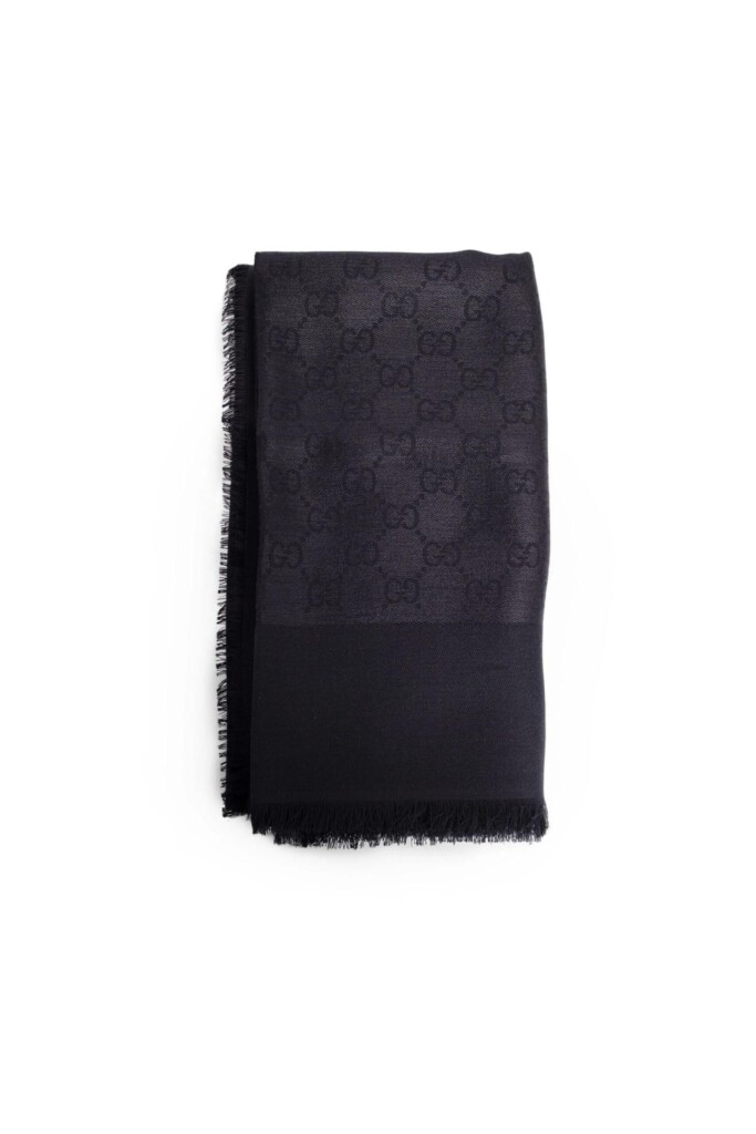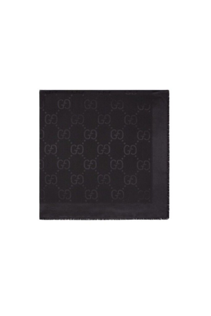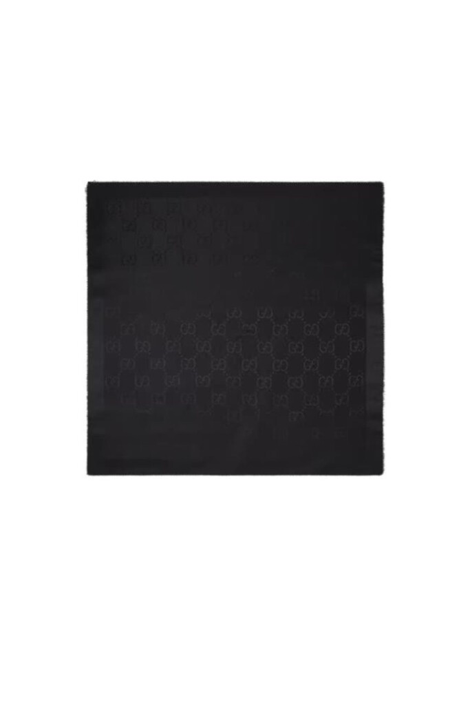Realizzato in lana e seta jacquard, questo scialle presenta l’emblematico motivo GG della Maison.