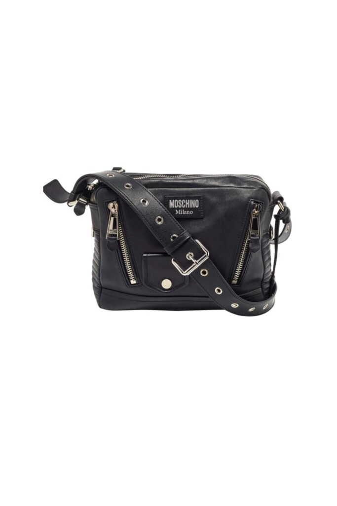 Ispirata alle iconiche giacche da motociclista, questa borsa Moschino dal tocco ironico รจ un vero must-have per ogni guardaroba. Realizzata in morbida pelle di nappa, รจ dotata di una tracolla a catena color argento che la rende pratica e versatile. Questo accessorio รจ un pezzo distintivo e alla moda, capace di conferire una sofisticata grinta al tuo look.