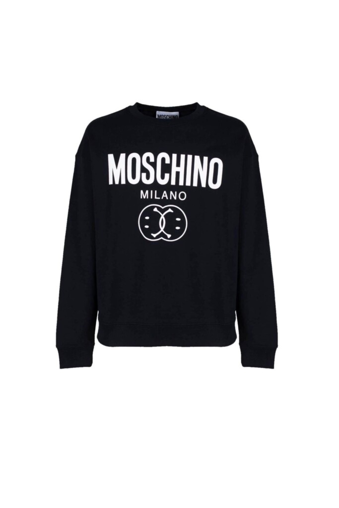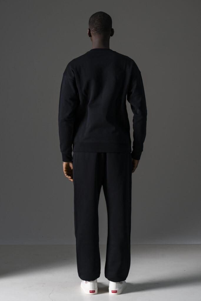 Nero, cotone biologico, stampa con logo sul davanti, girocollo e maniche lunghe.