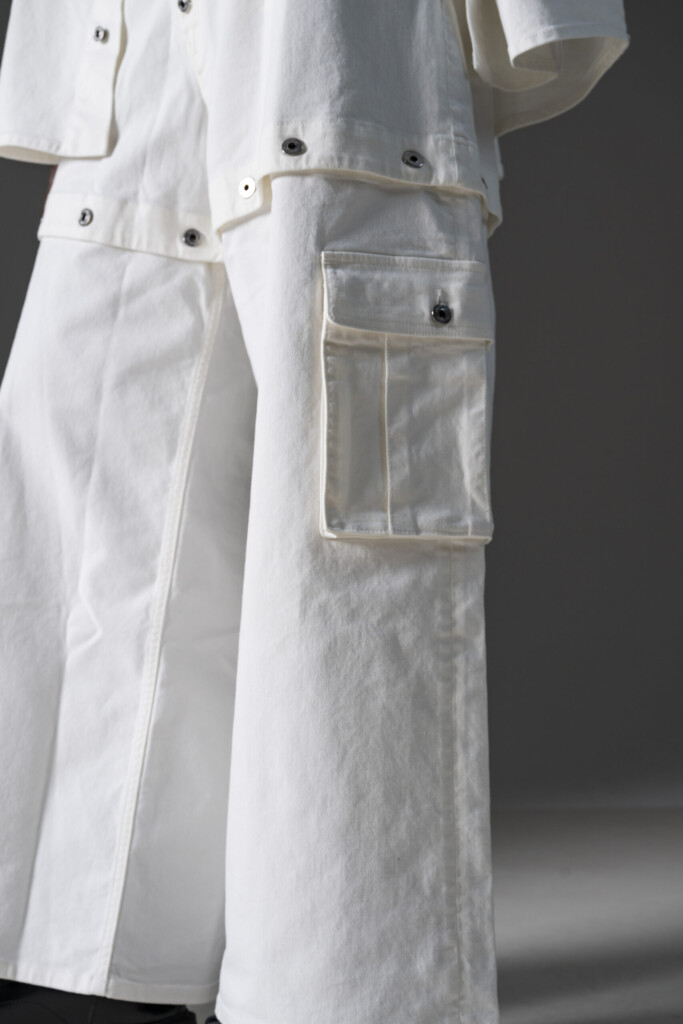 Vestibilitร baggy con taglio ampio completato da tasche utility.