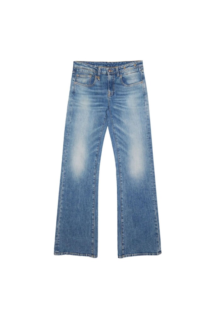 Jeans aderente a vita bassa nella parte superiore che si allarga poi sulla gamba per creare una silhouette dinamica.